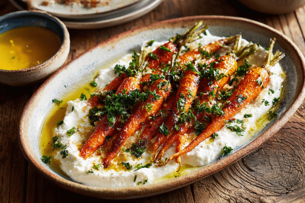 • Roasted Carrots with Whipped Ricotta and Hot Honey – A Sweet & Savory Side That Shines