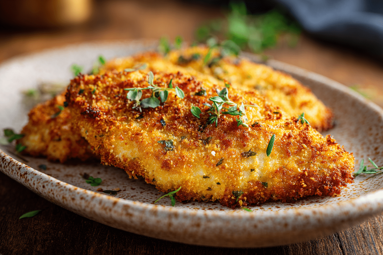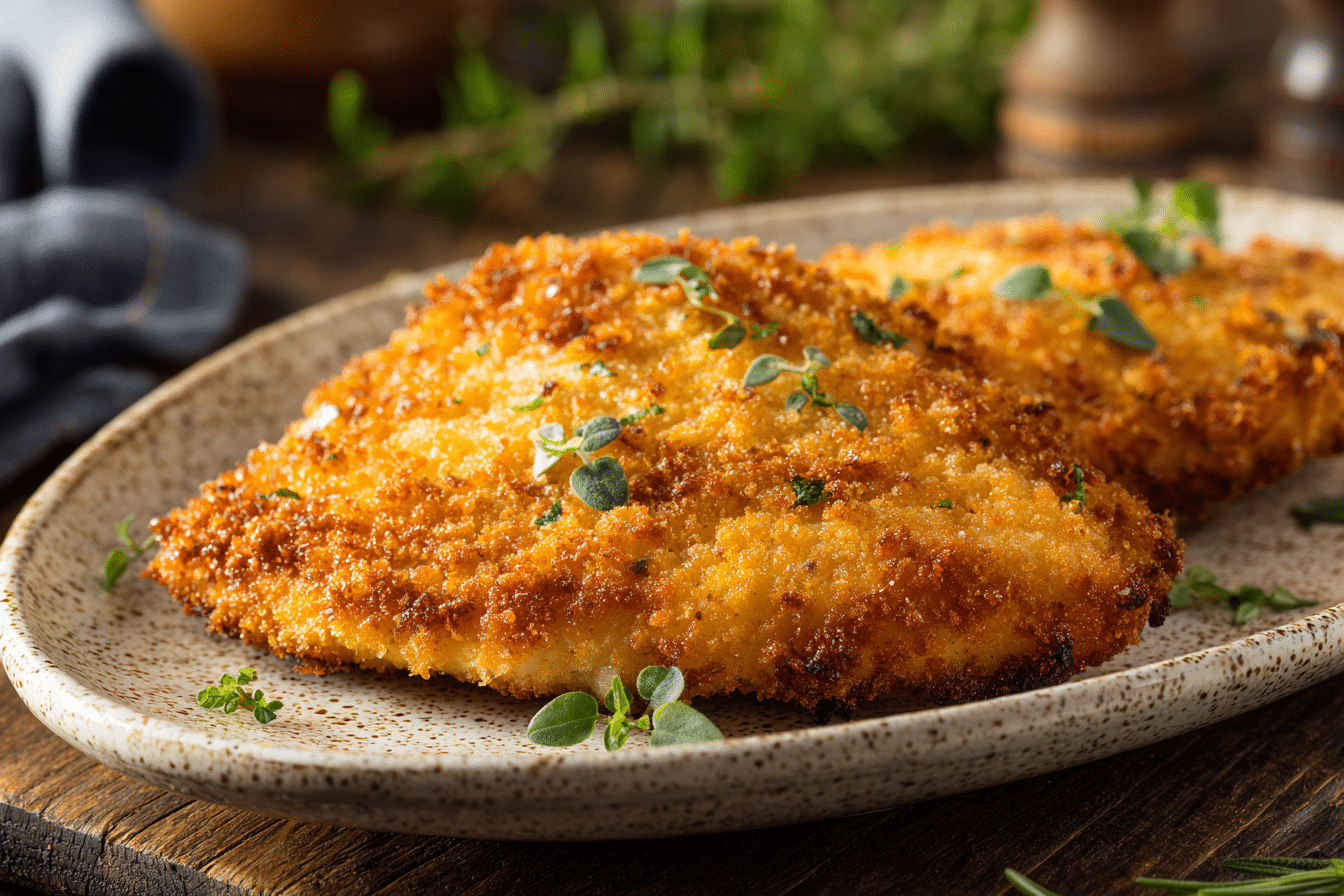 Parmesan Cheese (Finely Grated): The star of the crust. Choose real, aged Parmesan and grate it finely — the cheese melts into the breadcrumb mixture and crisps up beautifully.