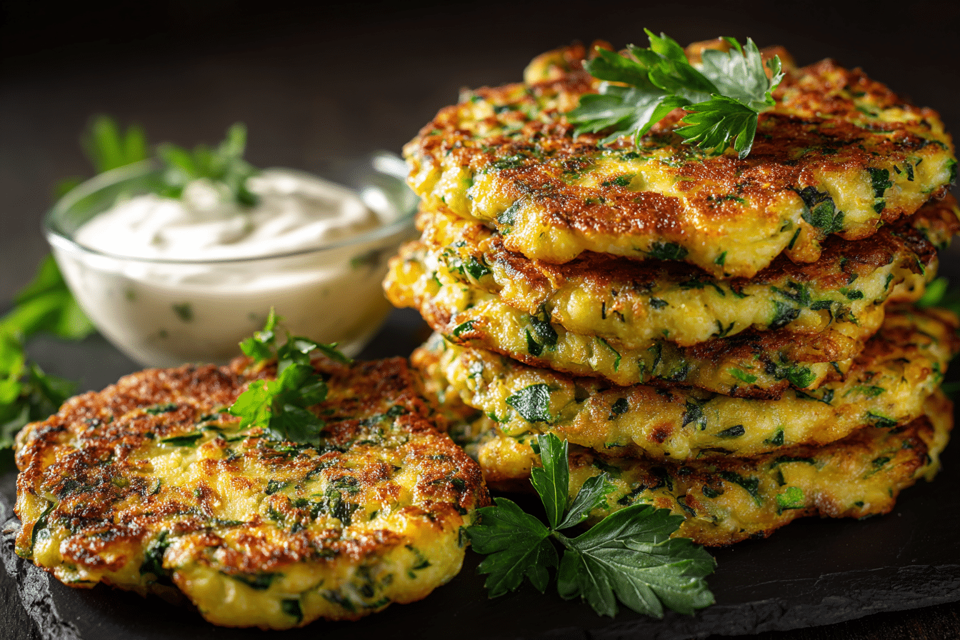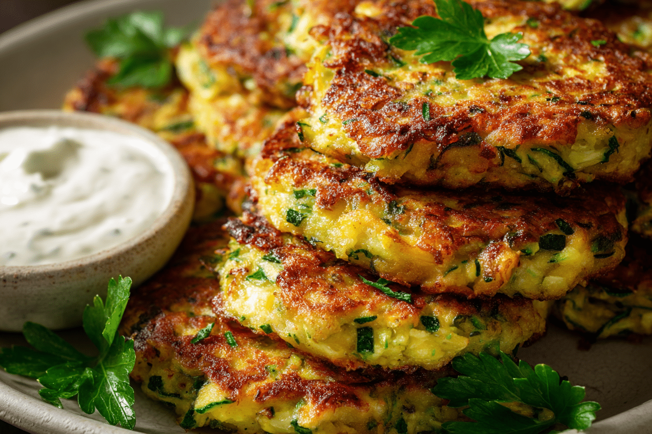 Golden, crispy zucchini fritters pan-fried to perfection with garlic, herbs, and Parmesan. A quick, savory dish perfect for brunch, sides, or vegetarian meals.