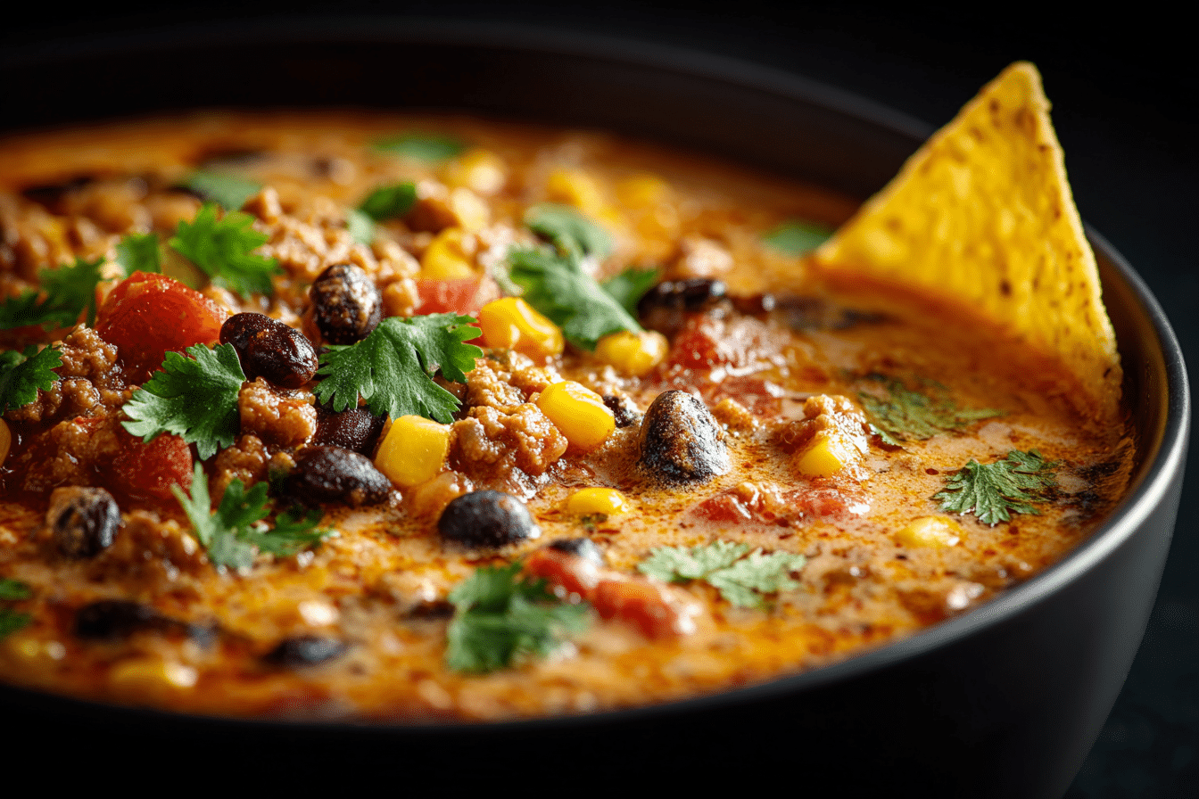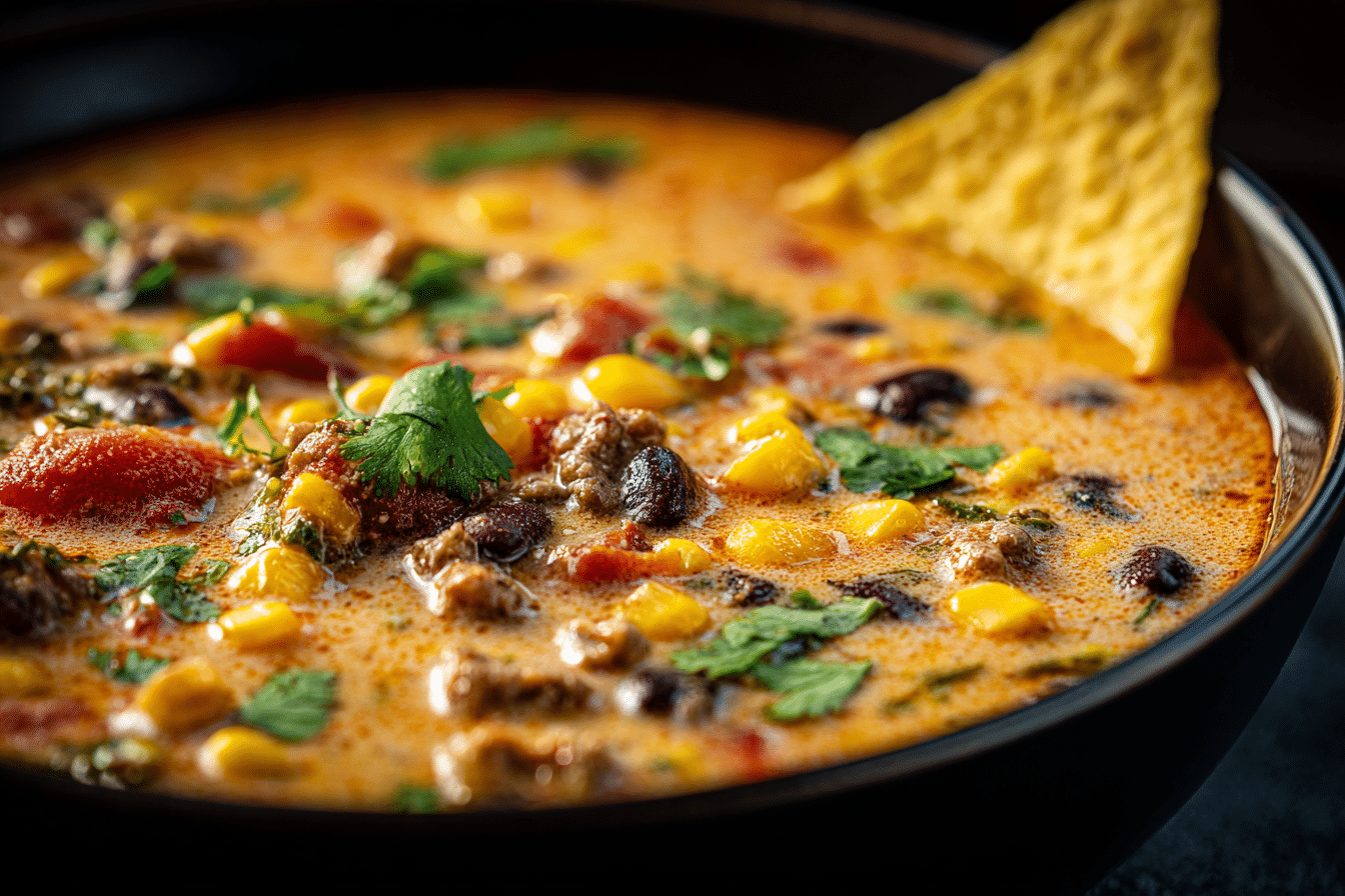 A creamy, taco-flavored soup loaded with lean ground meat, beans, and a protein-rich yogurt or cottage cheese base. Comforting, macro-friendly, and ready in 40 minutes.