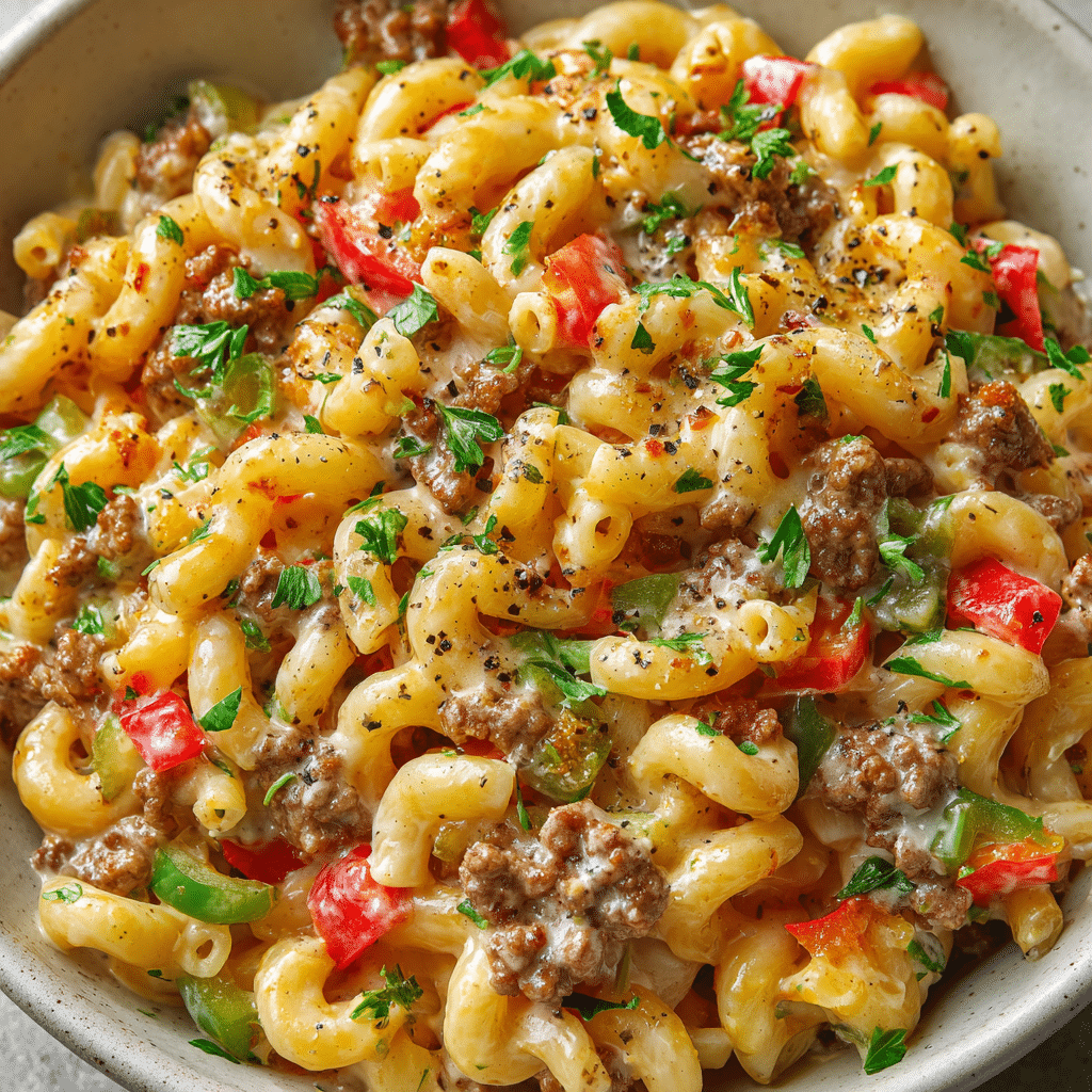 This High-Protein Philly Cheesesteak Mac & Cheese is the ultimate mashup of creamy, cheesy macaroni and savory, beefy Philly cheesesteak goodness. Packed with lean ground beef or steak, sautéed peppers and onions, and a rich but protein-boosted cheese sauce, this recipe delivers on both indulgence and nutritional goals.